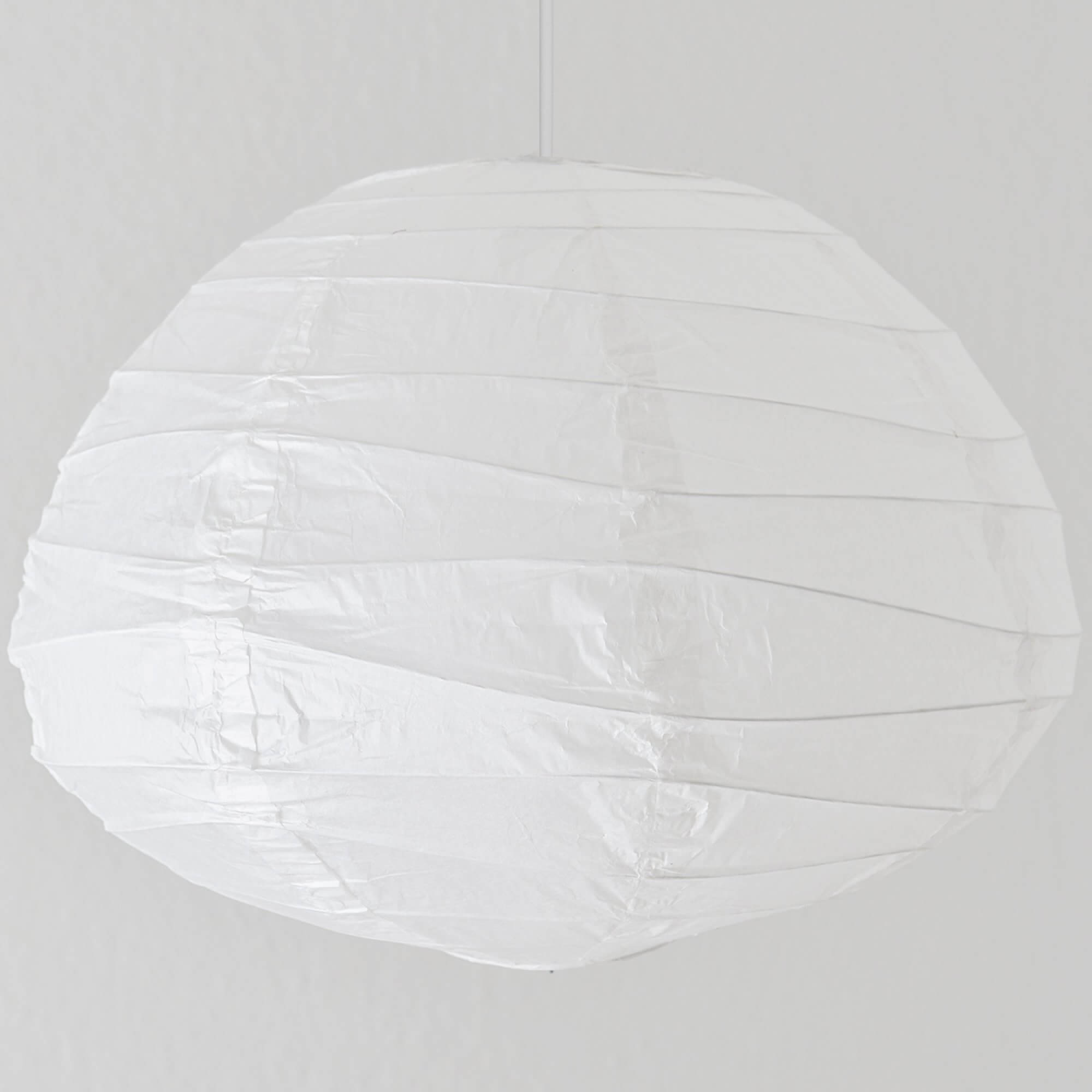 Hvid bowleformet papirlampe fremstillet af rispapir. Super dekorativ lampe, der gør sig godt over spisebordet eller lignende.