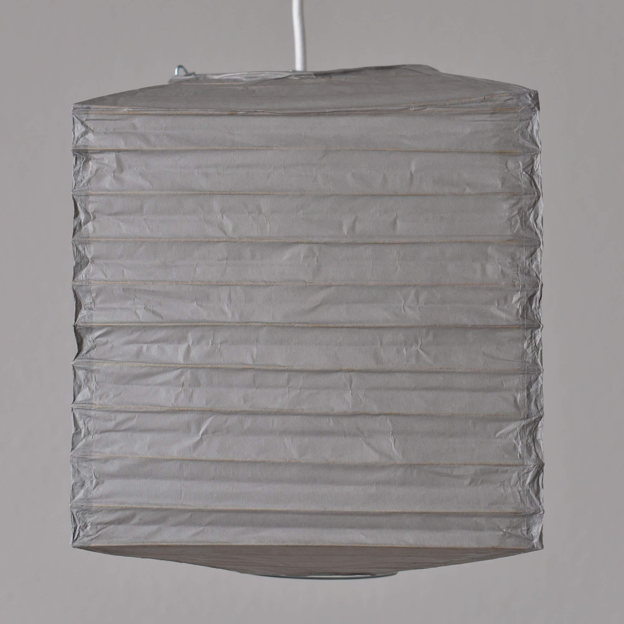 Denne grå firkantede rispapirlampe i grå, er velegnet i alle hjem. Den grå farve er nemt at indrette med og på trods af at lampen er grå, skinner der stadig varmt fint lys gennem det tynde papir. Lampen kan bruges som dekorationsbelysning såvel som belysing over skriveborde, middagsbordet eller som loftslampe i soveværelste. Der er mange muligheder. Hæng med fordel flere af disse lamper i forskellige niveauer og få spil og dybde i din belysning og indretning.