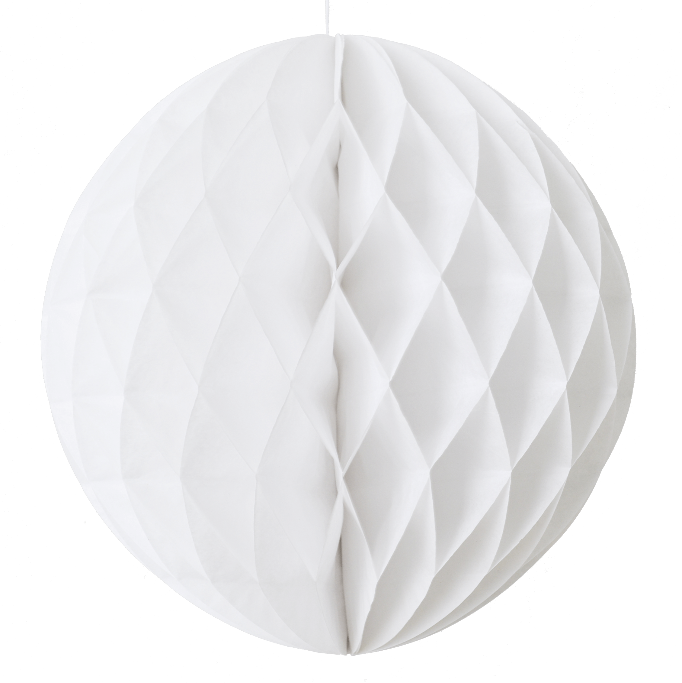 Denne hvide papirkugle kan blandes med mange forskellige farver og er derfor en favorit til alle slags dekorationer. Hvis du ønsker variation i din oppyntning, så prøv eventuelt at sætte dem sammen med vores farverige rispapirlamper eller papir pomponer.