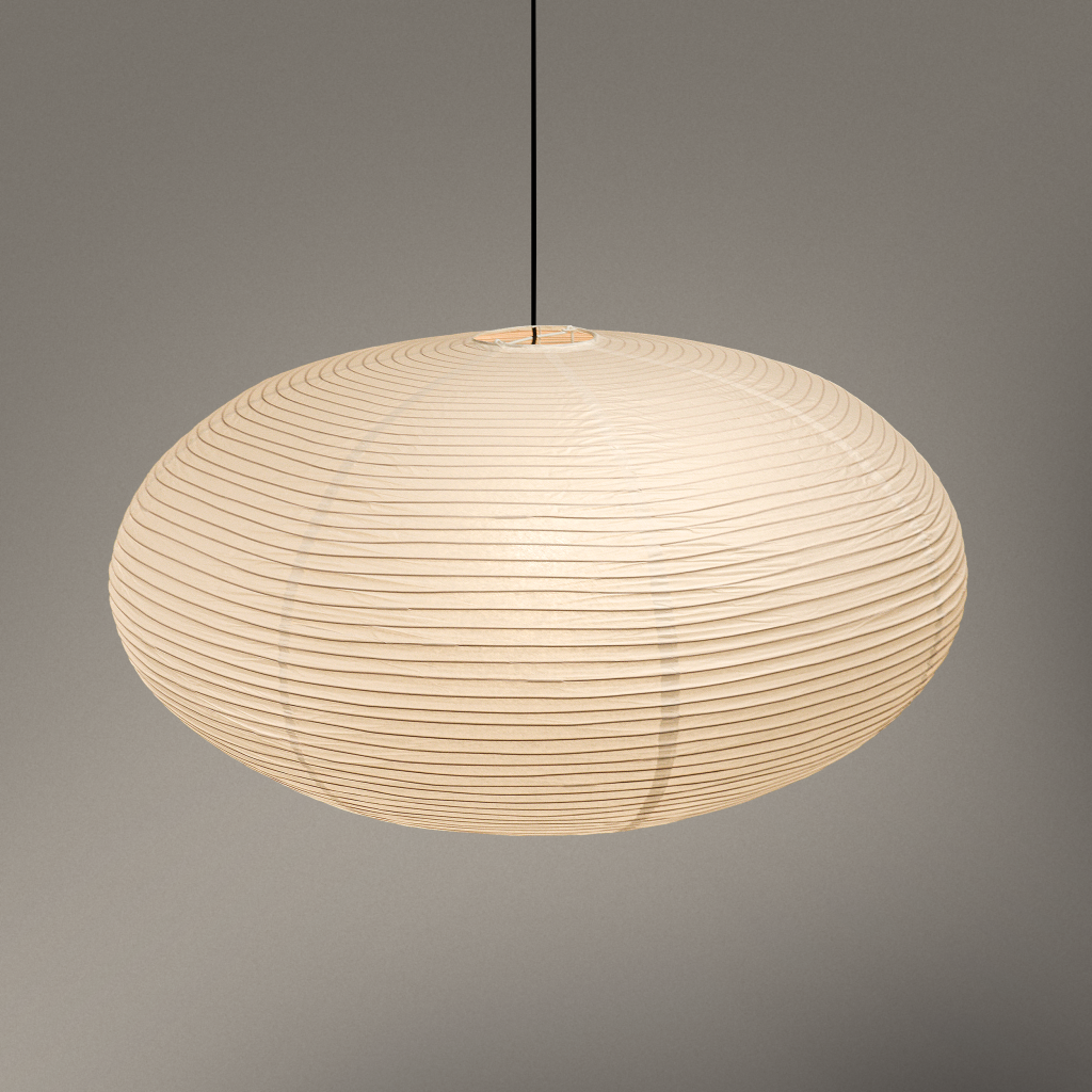 Skab en eksklusiv og harmonisk atmosfære med det blide lys, der filtreres gennem det fine rispapir. Uanset om lampen er tændt eller slukket, tilfører den et let og luftigt præg til ethvert rum.