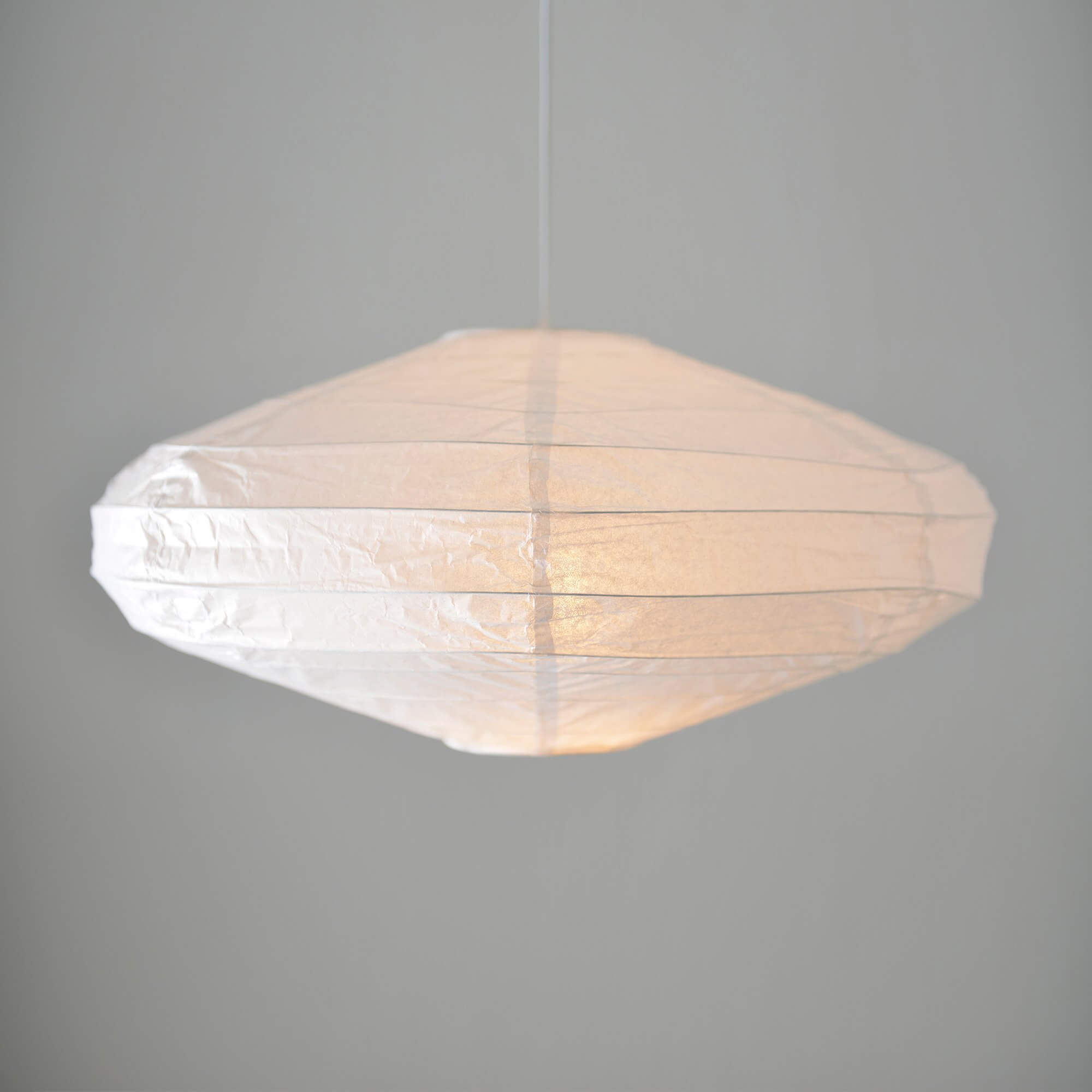 Beautiful white octagonal rice paper lamp with an oval shape. The lamp is 60cm in diameter and is a perfect size over the dining table or similar.
