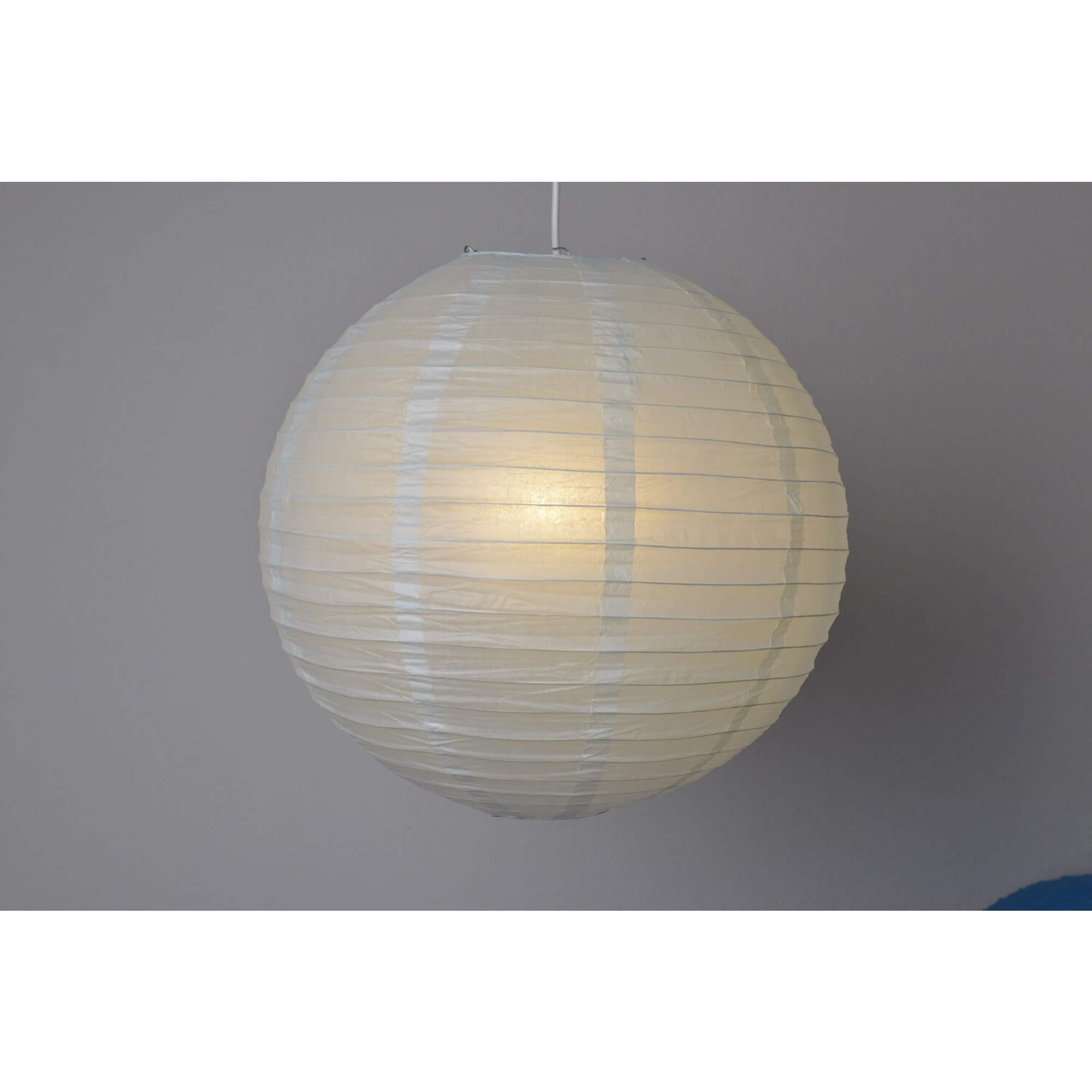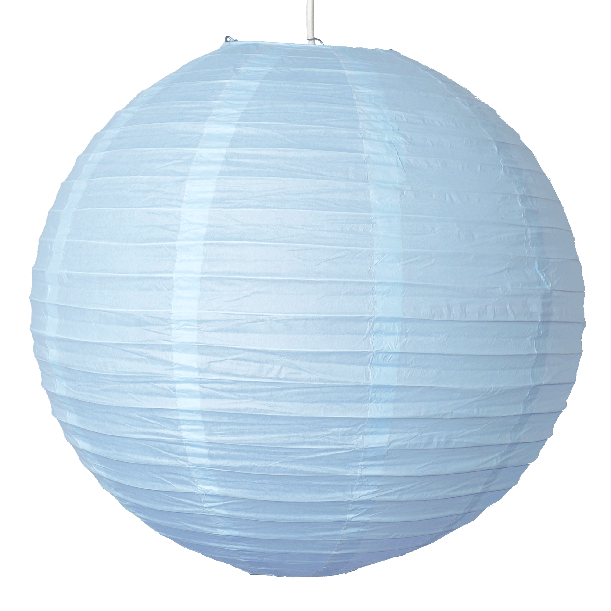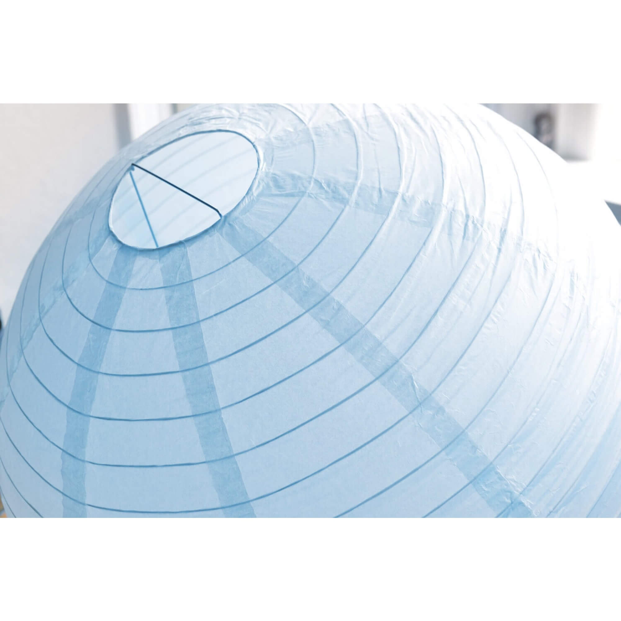 Baby blå rislampa gjord i rispapper. Lampan finns i olika storlekar och gör sig bra både i hemmet och till festen.