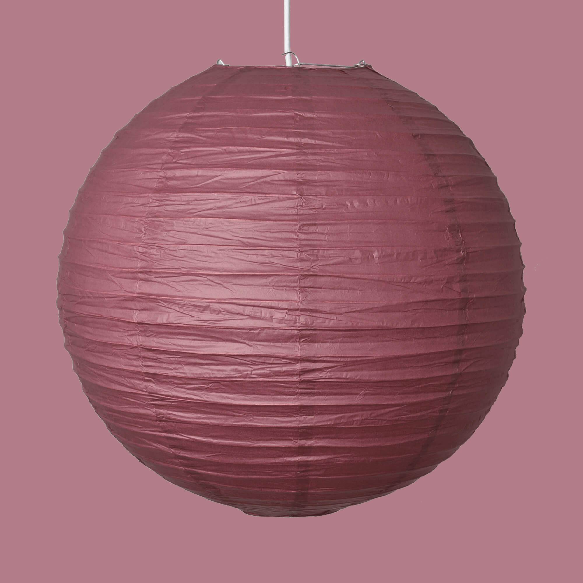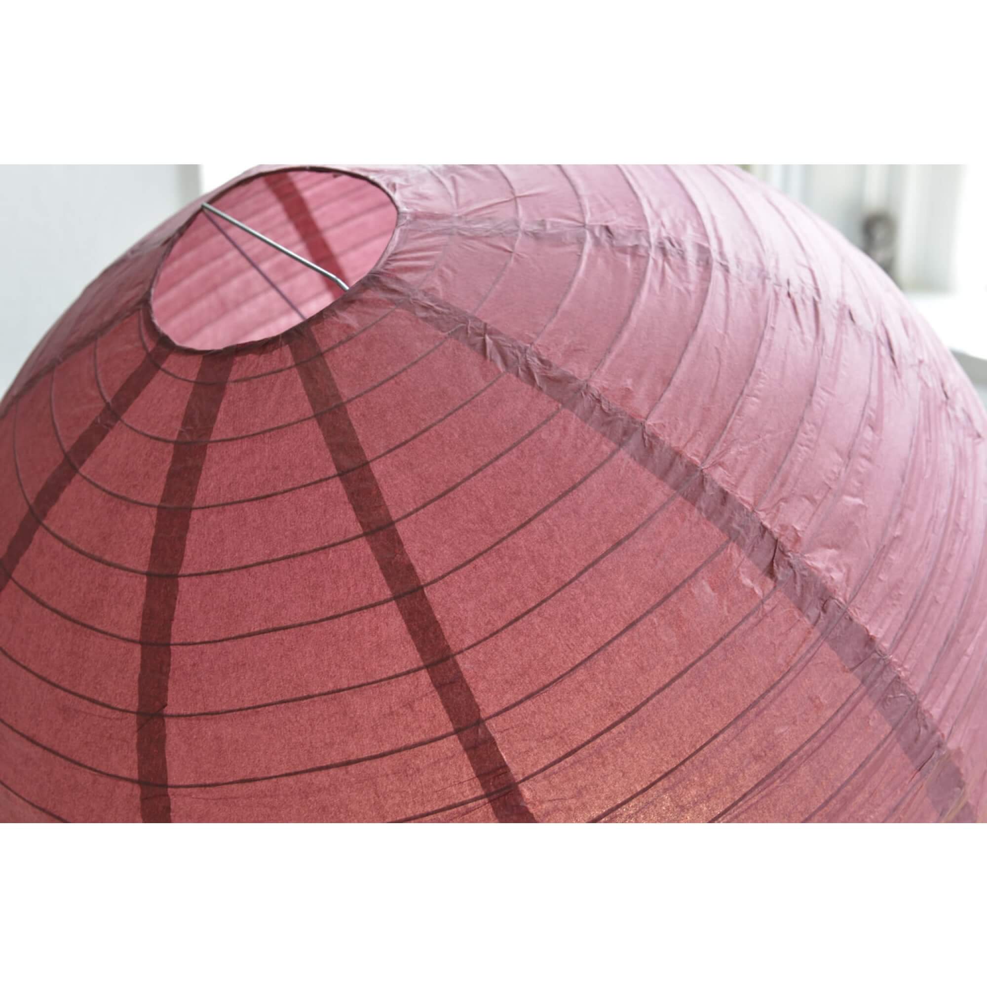 Bordeaux rislampa gjord i rispapper. Lampan finns i olika storlekar och gör sig bra både i hemmet och till festen.