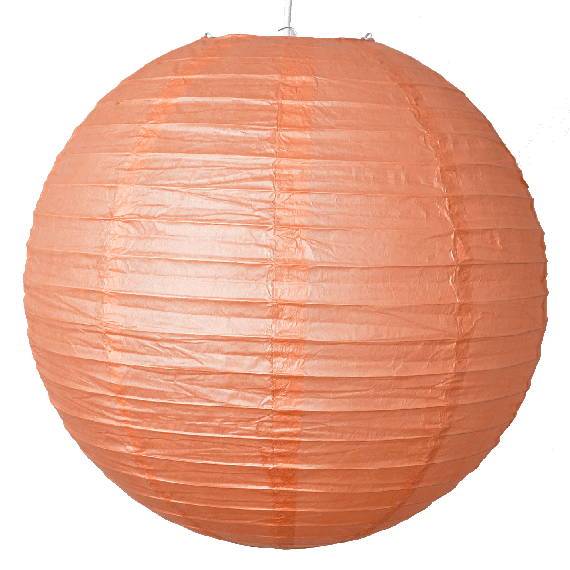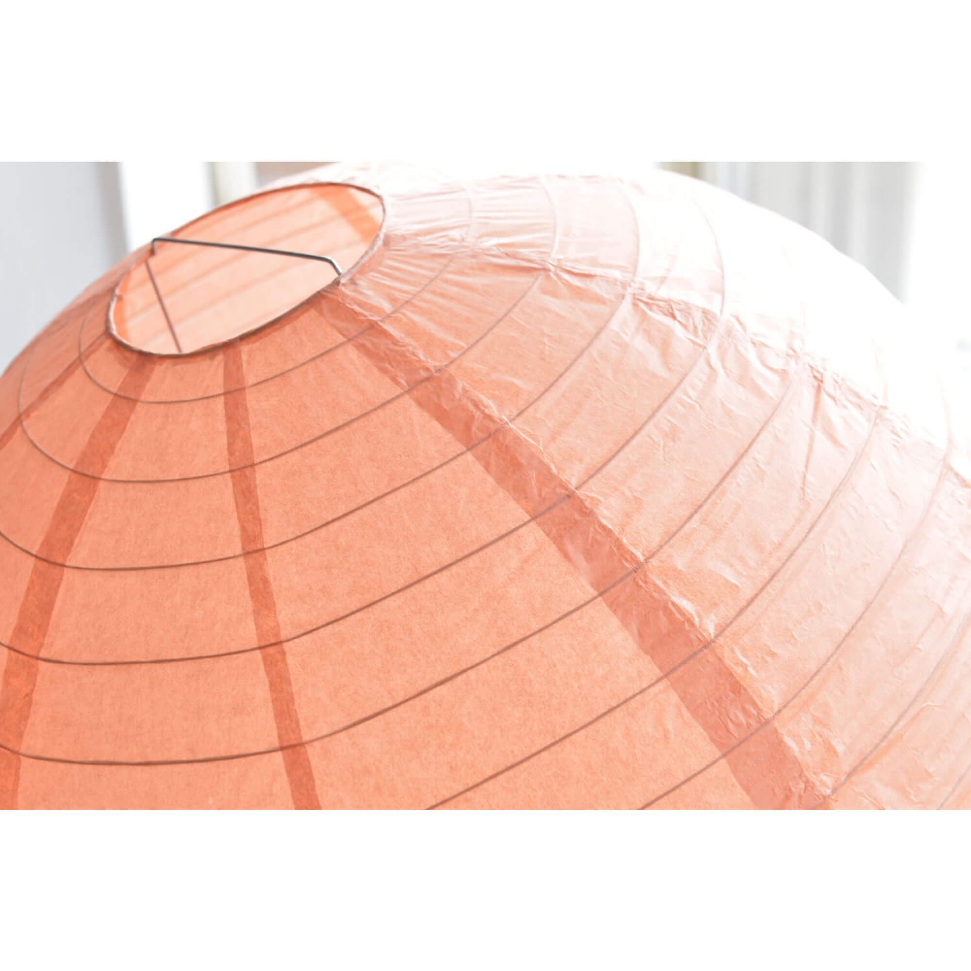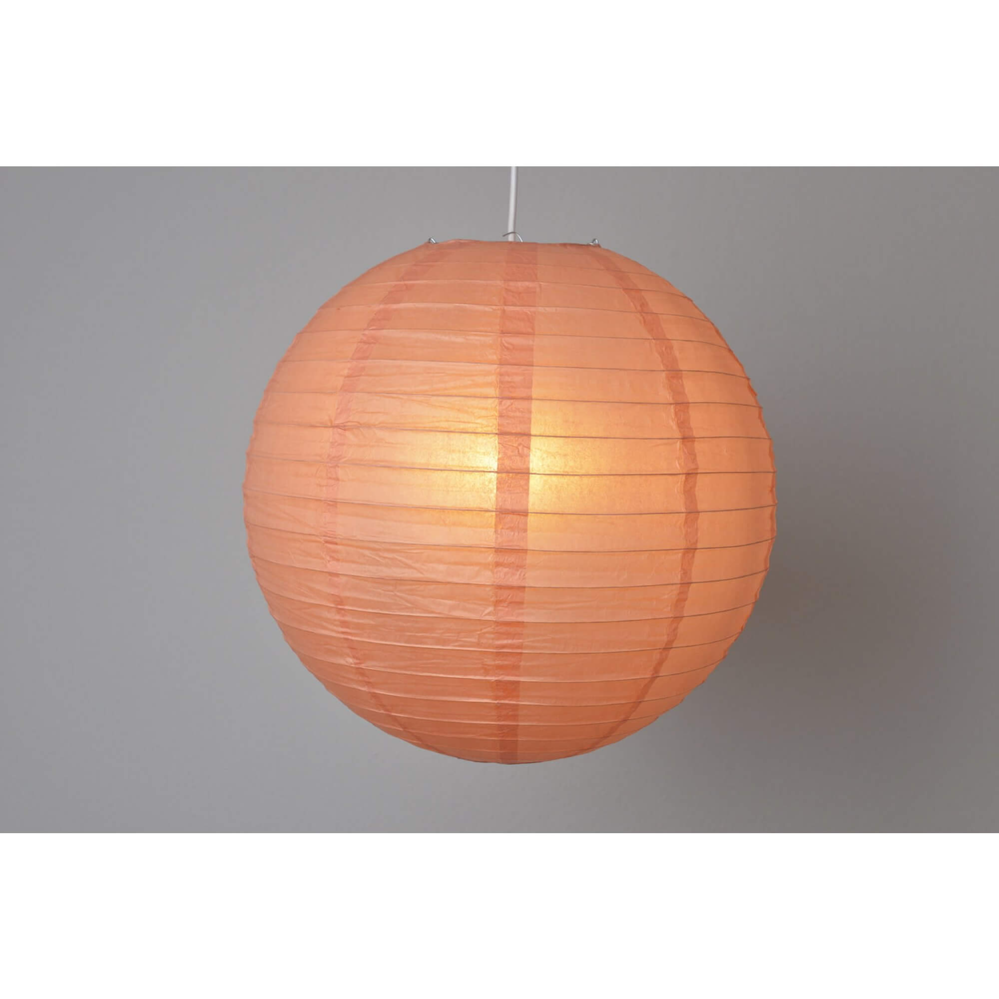 Rund persika rislampa gjord i rispapper. Lampan finns i olika storlekar och gör sig bra både i hemmet och till festen.