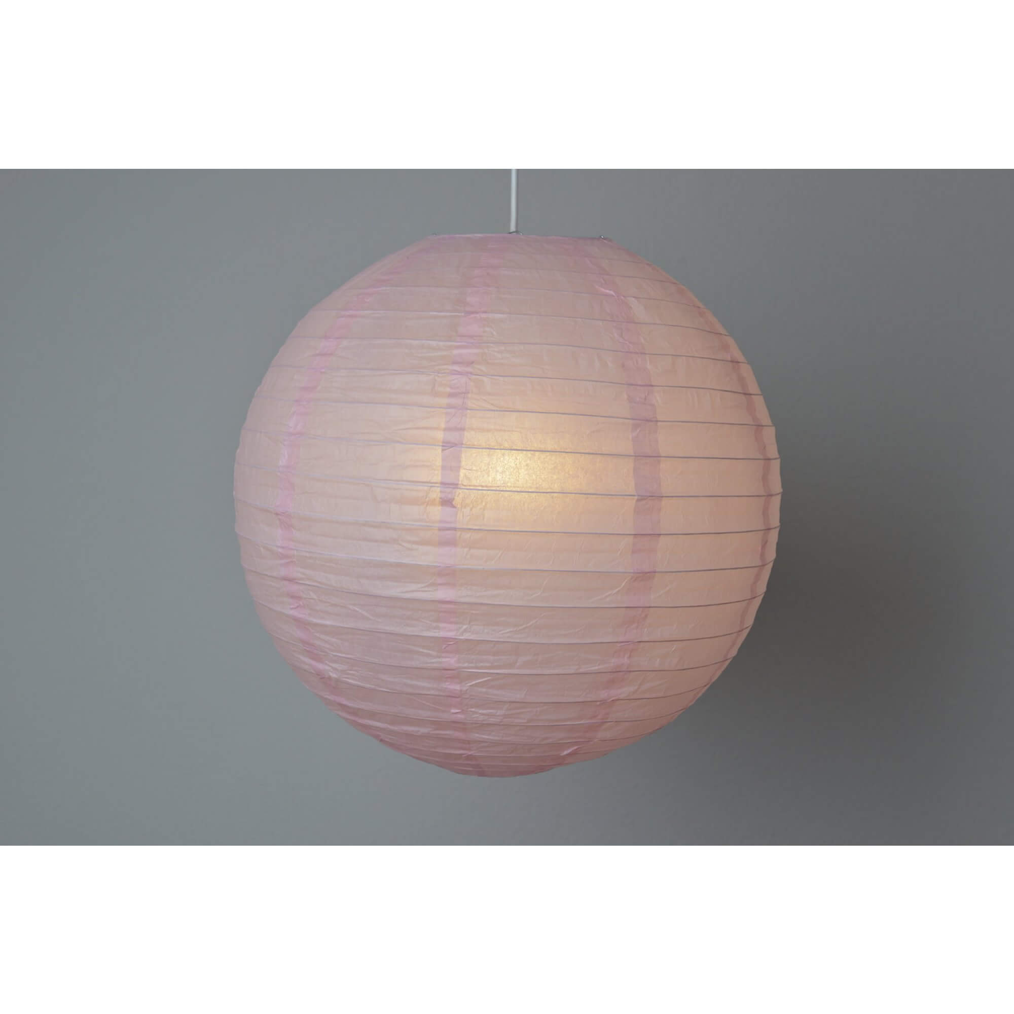 Pink rislampa gjord i rispapper. Lampan finns i olika storlekar och gör sig bra både i hemmet och till festen.