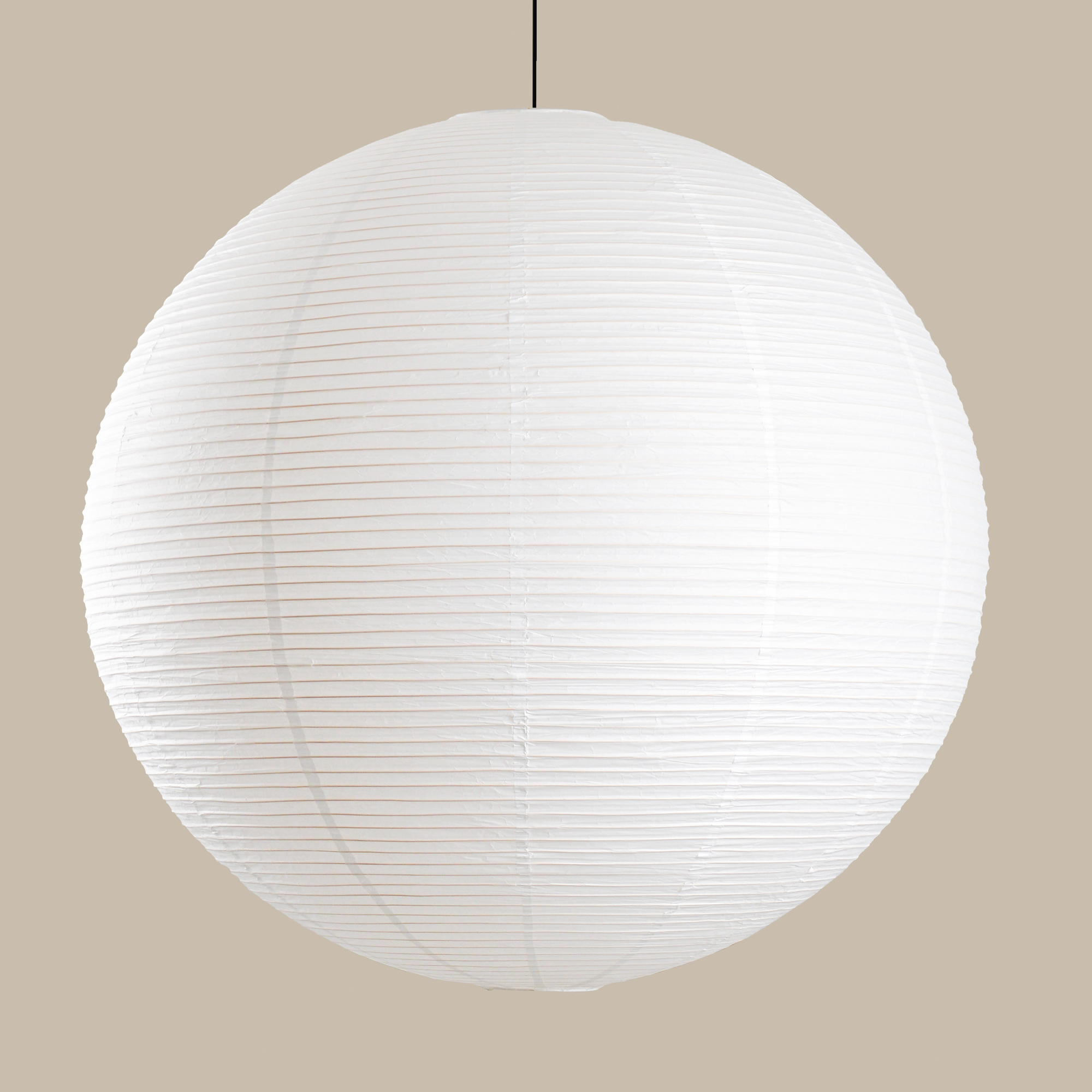 Låt denna majestätiska lampa lysa i rum med högt i tak, där den svävar som ett elegant moln och skapar ett imponerande fokus. Ta din inredning till nya höjder med vår Také-rispapperslampa.